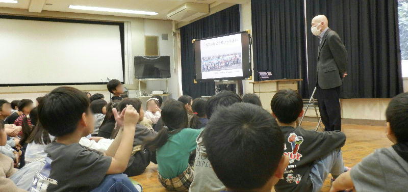 小学校からも富士山が見えた授業が終わったあとも、何人もの児童からいろいろと話しかけられました。