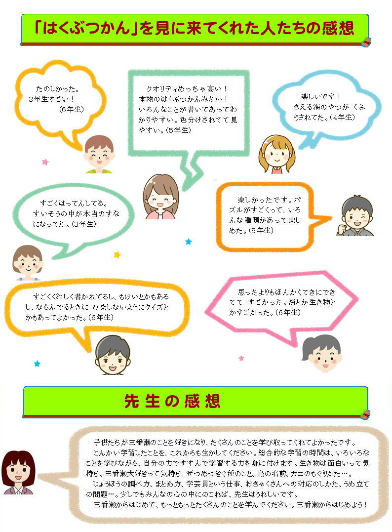 - 「八木が谷三番瀬はくぶつかん」の展示の中で、楽しかったものや心に残ったものは何ですか。