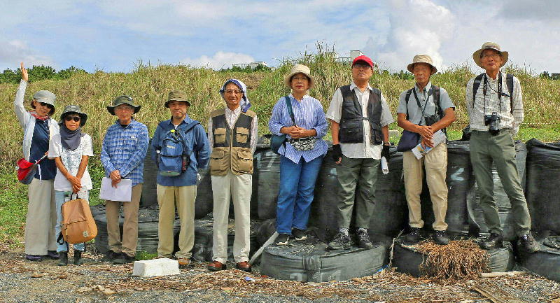 幕張の浜の惨たんたる状況を見学する三番瀬保全団体のメンバー=2025年9月23日
