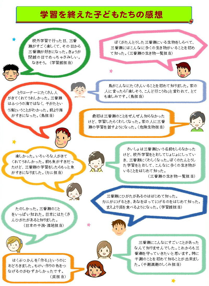 八木が谷小学校は三番瀬から遠く離れているので、児童たちは三番瀬の生き物をあまり知らないのではないかと思っていました。意外でした。アメフラシにくわしいとはプロ級です。